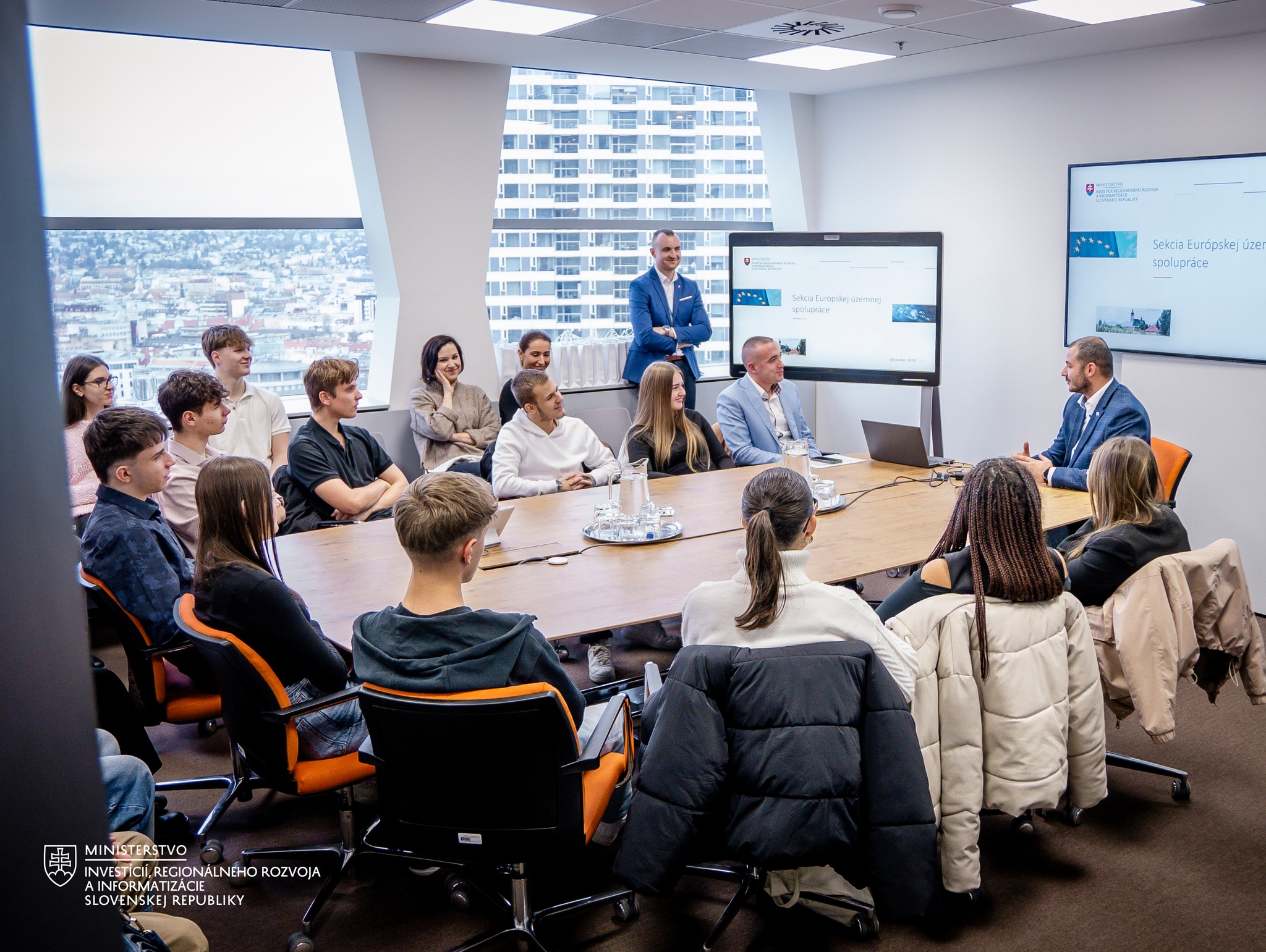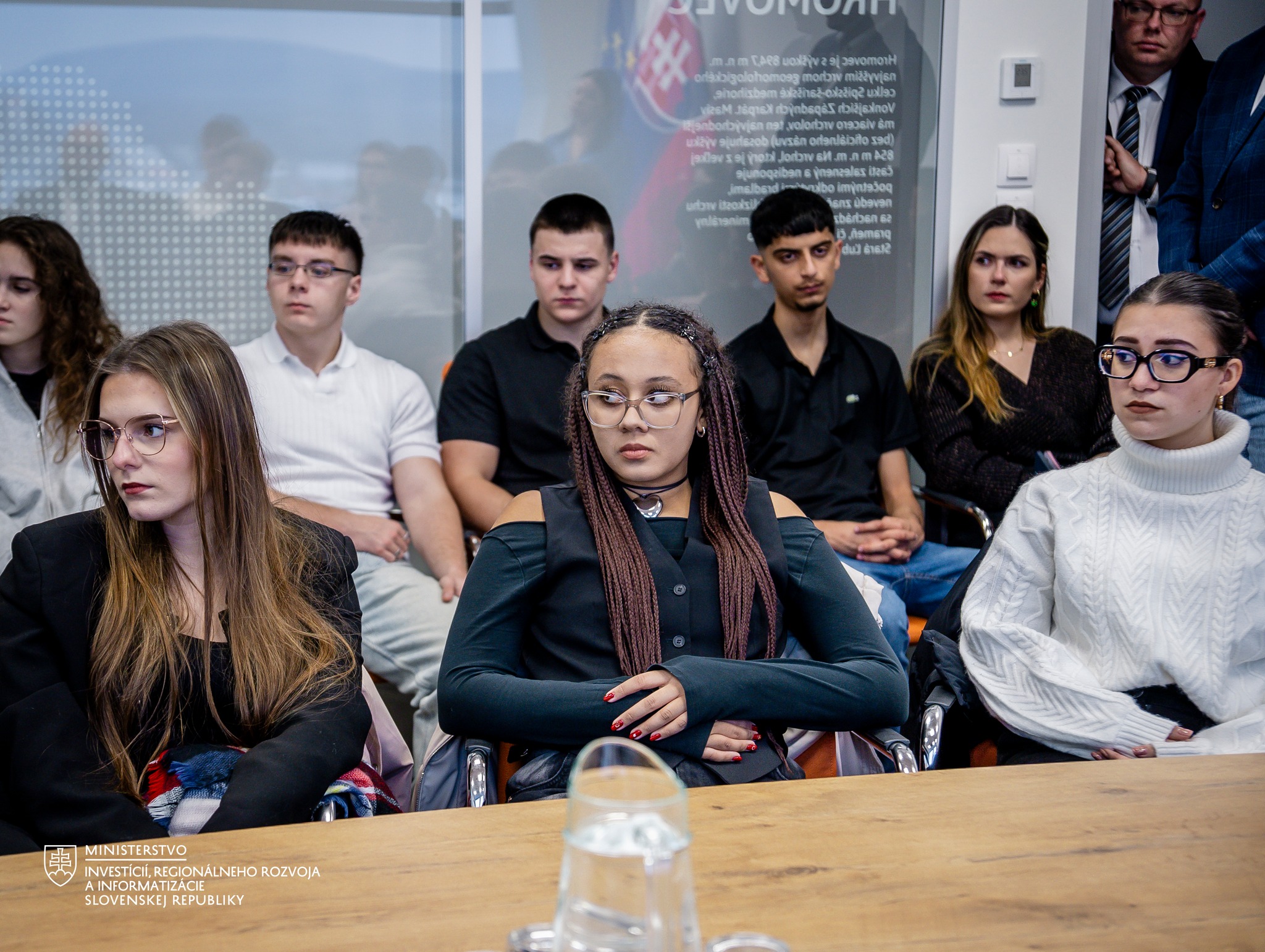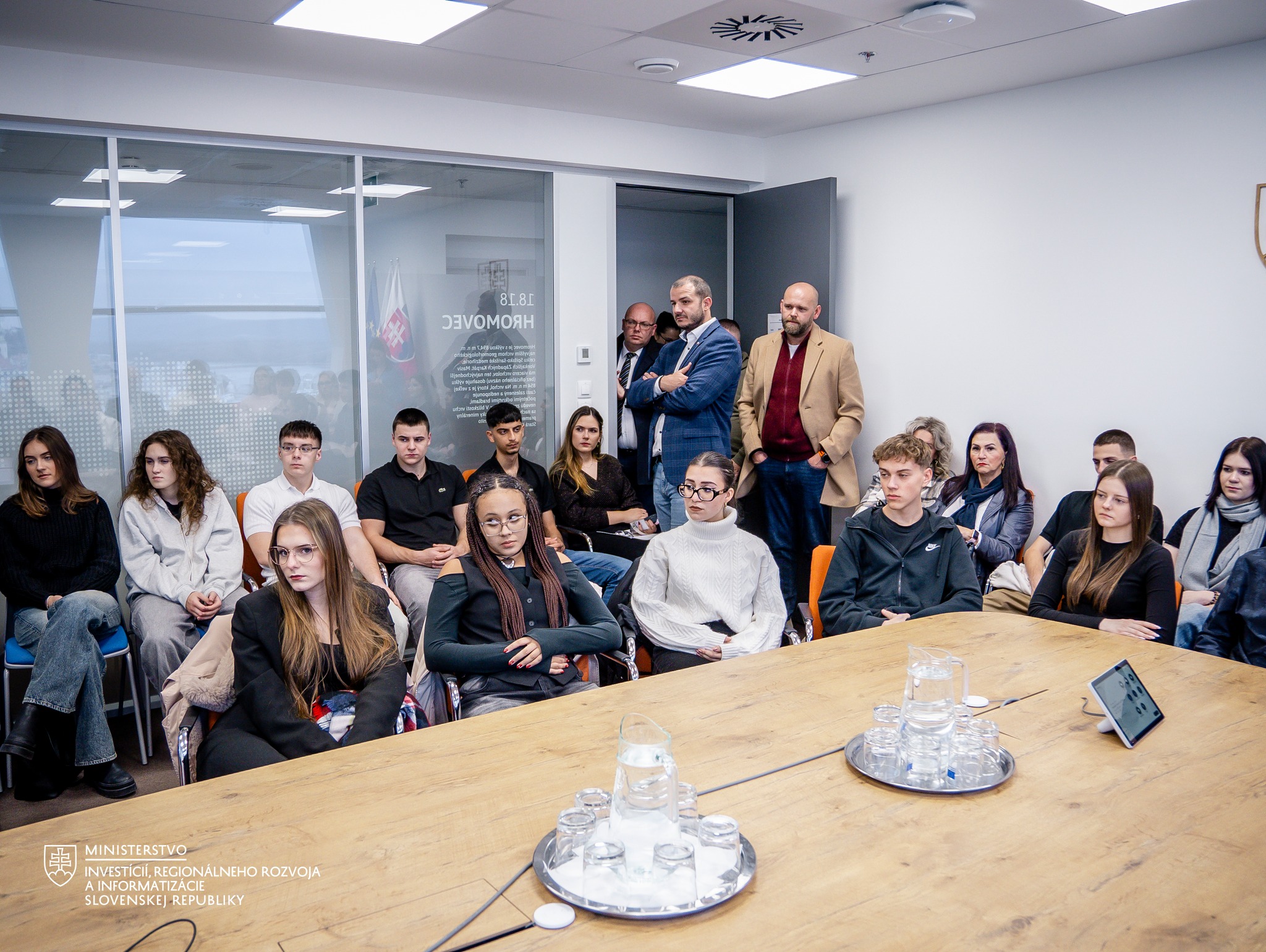 V stredu (11. decembra) sme v priestoroch MIRRI SR privítali študentov z Gymnázia Cyrila Daxnera vo Vranove nad Topľou. Na úvod sa im prihovoril minister Richard Raši a následne svoje aktivity prezentovali kolegovia zo sekcie európskej územnej spolupráce, sekcie digitálnej agendy, sekcie regionálneho rozvoja a našej sekcie inovácií a strategického rozvoja. V rámci návštevy sme im okrem toho priblížili, ako funguje ministerstvo, akú legislatívu tvoríme a komu pomáhame. V ich ďalšom štúdiu im držíme palce a veríme, že si odniesli množstvo nových informácií a niektorých z nich onedlho privítame v budove Tower 115.