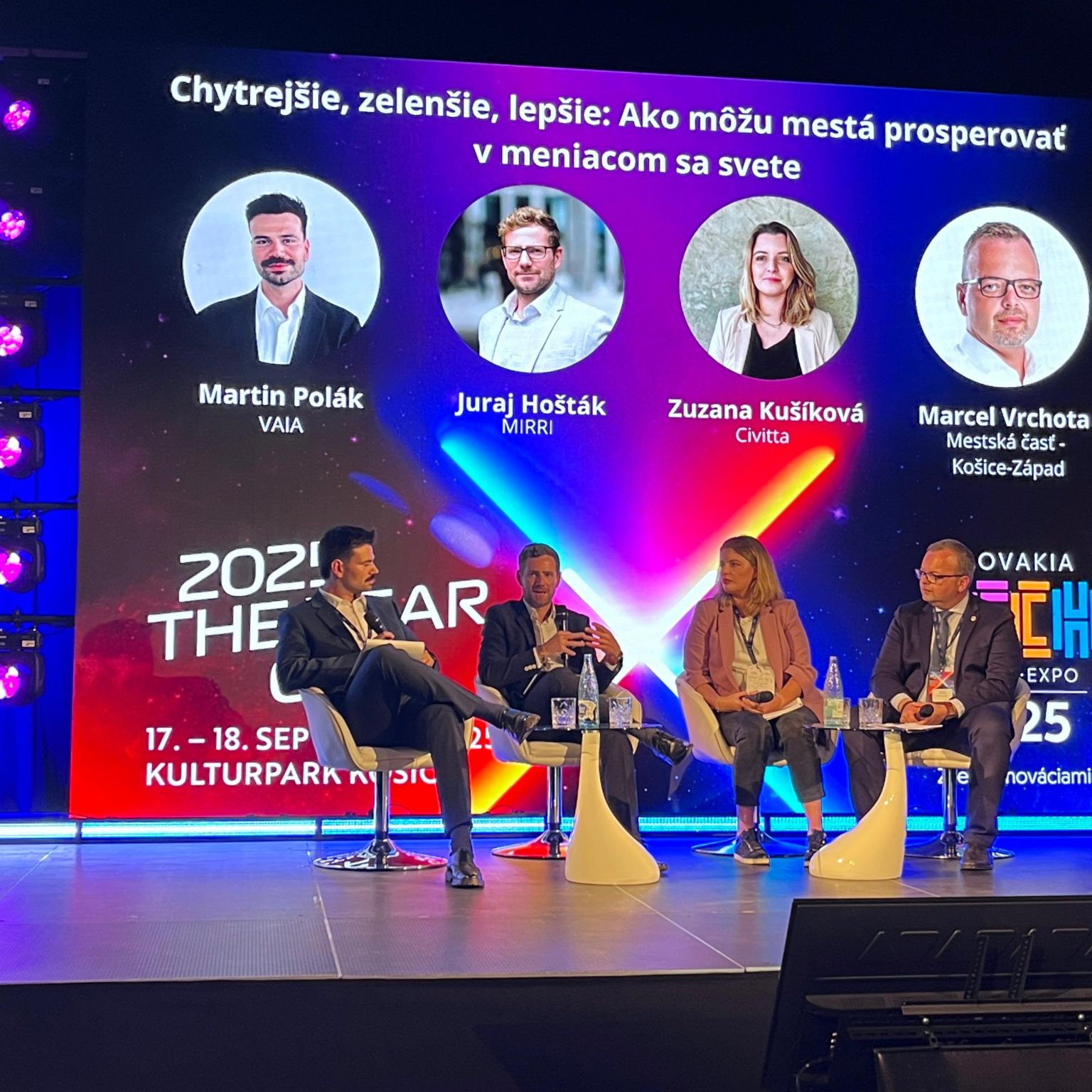 V dňoch 17. a 18. septembra sa vedenie nášho ministerstva zúčastnilo podujatia SlovakiaTech 2025 v Košiciach, ktoré je dnes najväčším fórom o budúcnosti technológií a inovácií na Slovensku. Súčasťou delegácie bol aj generálny riaditeľ sekcie inovácií a strategického rozvoja Juraj Hošták. Predmetom diskusií boli všetky témy, ktorým sa na útvare venujeme vrátane implementácie smart riešení, umelej inteligencie, dátových platforiem, ale aj kybernetickej bezpečnosti, kvantových technológií či nových spôsobov dopravy. To všetko sú agendy, ktoré sa na prvý pohľad môžu zdať vzdialené, no v skutočnosti sa týkajú každého z nás. Určujú, ako budeme žiť, pracovať a učiť sa v najbližších rokoch. Náš GR bol hosťom panelovej diskusie s názvom „Chytrejšie, zelenšie, lepšie: Ako môžu mestá prosperovať v meniacom sa svete?“ spolu so Zuzanou Kušíkovou (Civitta Innovation) a Marcelom Vrchotom, starostom MČ Košice-Západ. Ako uviedol – „naša diskusia zdôraznila potrebu lepšieho zamerania investícií do rozvoja miest a zmeny v tom, ako mestá vnímajú a integrujú inovácie do svojich základných procesov a služieb. Práve týmto smerom vedieme s našim tímom aktivity v smart agende na MIRRI SR. Verím, že budúcnosť miest a regiónov spočíva v správnom vyvážení riešení založených na umelej inteligencii, miestnych politík a odvážnych investícií do inovácií, ktoré môžu vytvoriť prostredie udržateľnejšie, efektívnejšie a viac zamerané na človeka“. Viac informácií nájdete na webe SlovakiaTech-u.